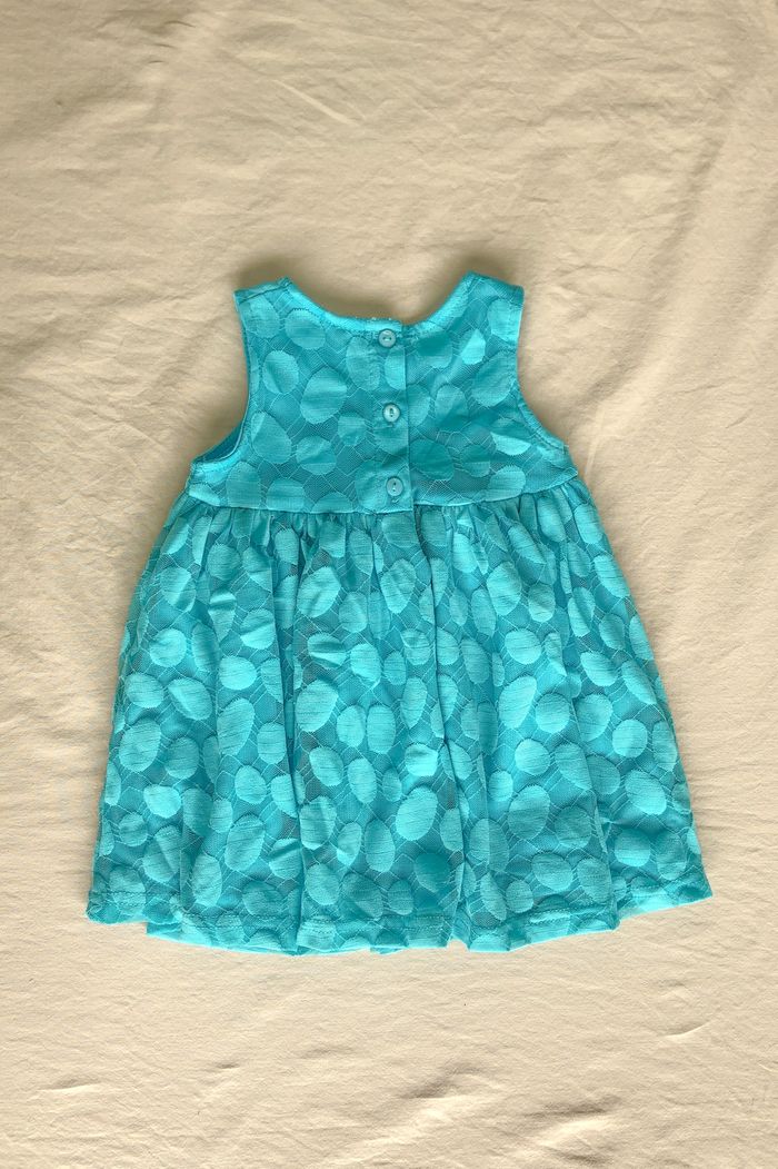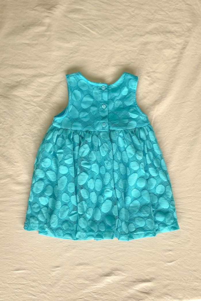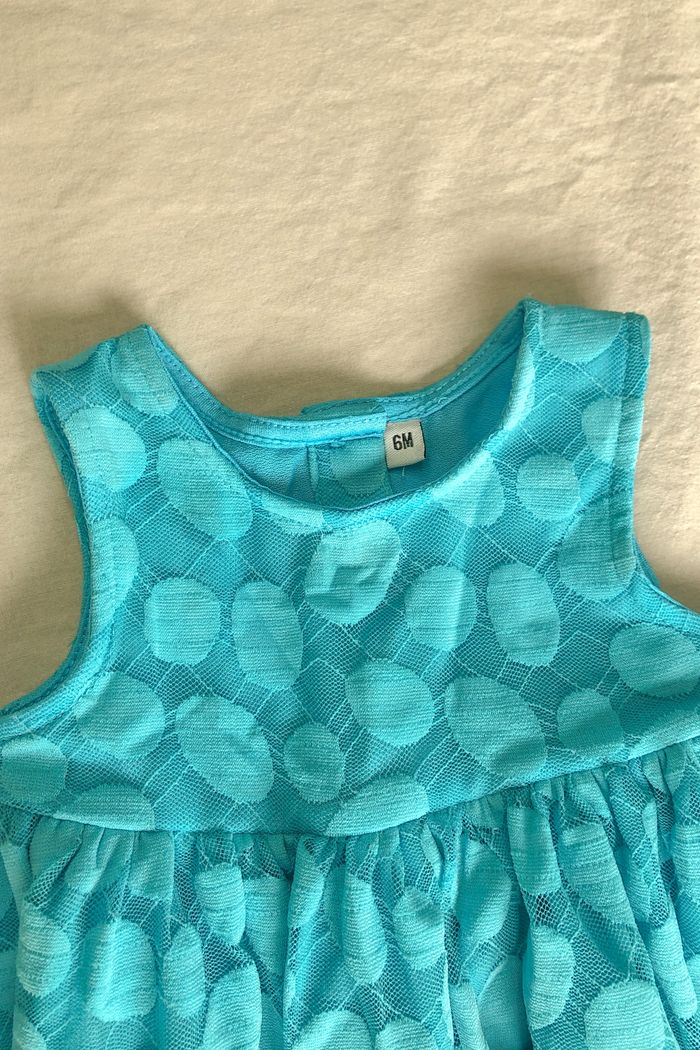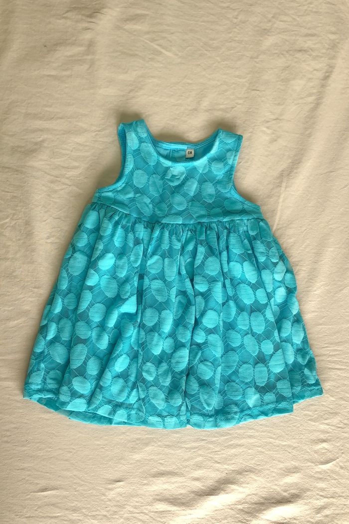 Robe bébé 6 mois 𝙍𝙤𝙗𝙚 𝙗𝙚́𝙗𝙚́ 𝙛𝙞𝙡𝙡𝙚 𝟲 𝙢𝙤𝙞𝙨 Superbe petite robe couleur turquoise avec doublure dentelle Sans manches Marque : Sans Taille : 6 mois / 67 cm Entretien: Lavage à 30°C manches courtes . col rond . printemps . été . bleu . turquoise . pois . robe . girl . baby . cute . gift . cadeau . naissance .