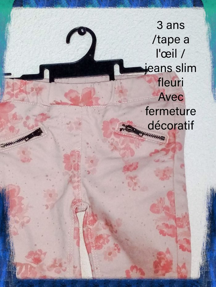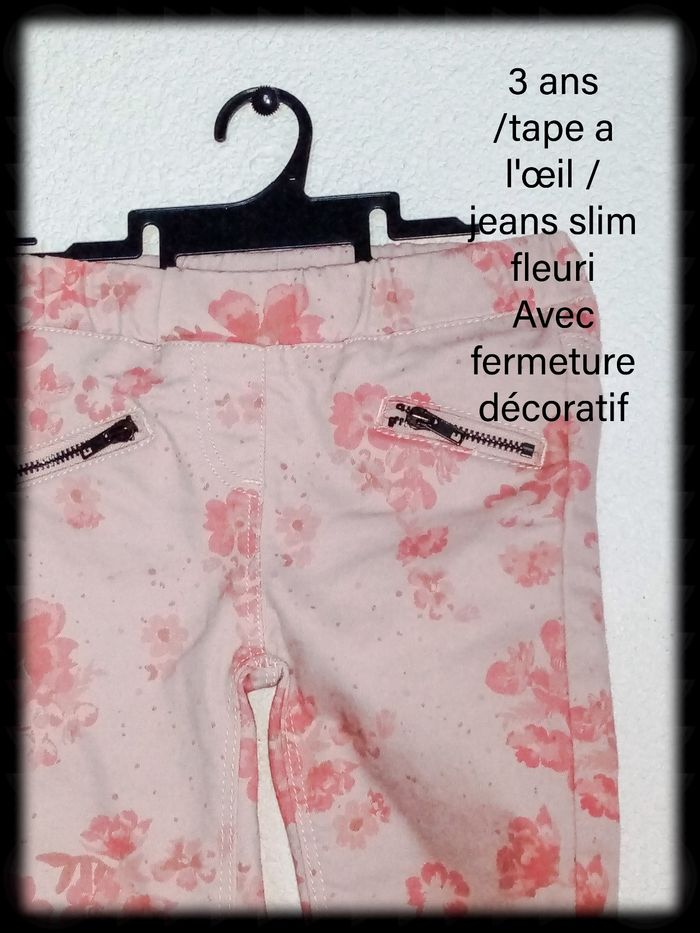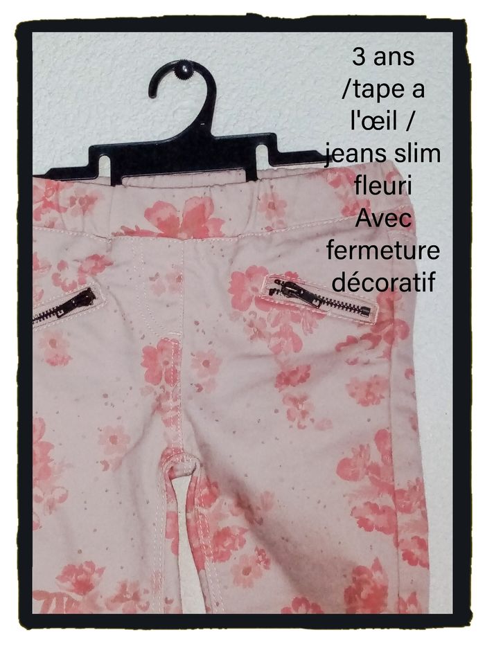 3 ans tao jeans rose fleuri print été /excellent état - photo numéro 5