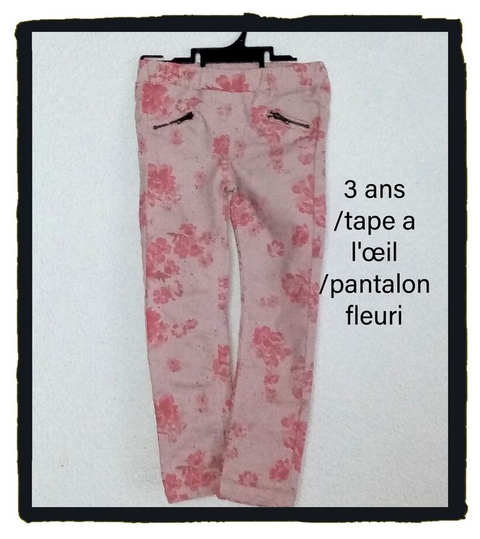 3 ans tao jeans rose fleuri print été /excellent état - photo numéro 1