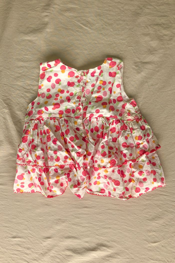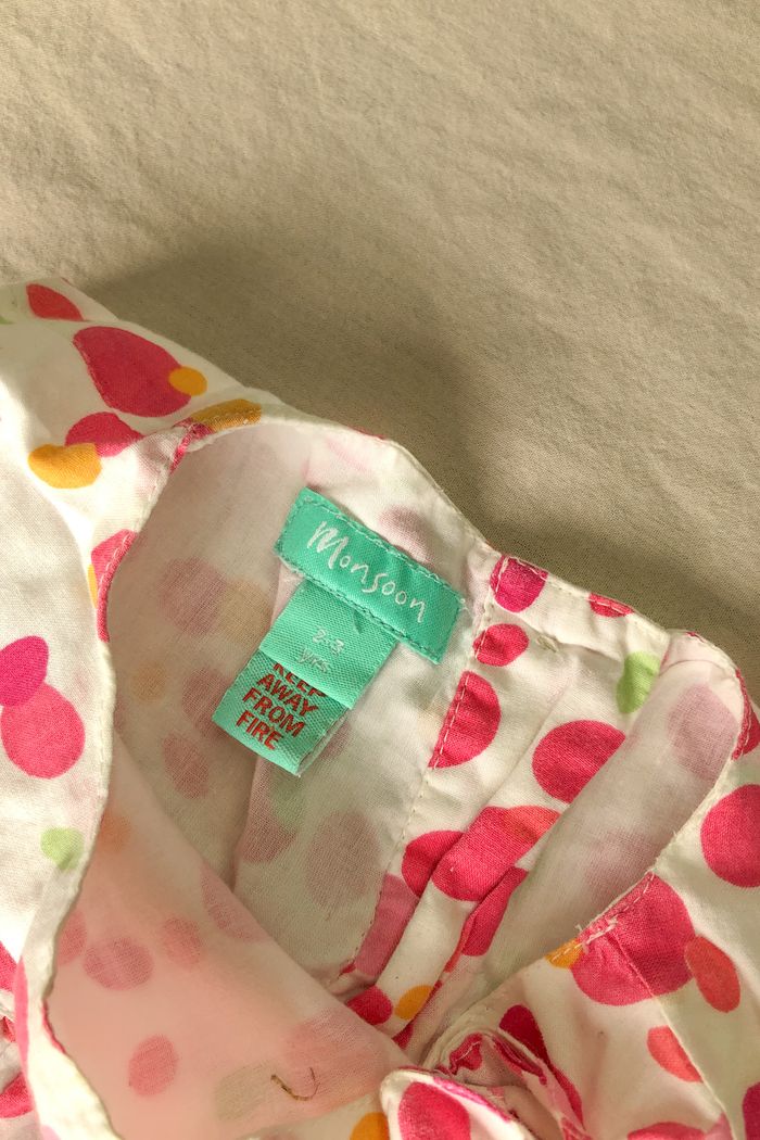 Robe fille 2/3 ans Superbe petite robe à pois avec noeud papillon en tissu sur le devant Fermeture à l'arrière avec 3 boutons. Sans manches Marque : Monsoon Taille : 2/3 ans Matière: 100% coton Entretien: Lavage à 40°C manches courtes . col rond . printemps . été . orange . fleur . flower . robe . girl . baby . cute . gift . cadeau . pois . naissance . dress
