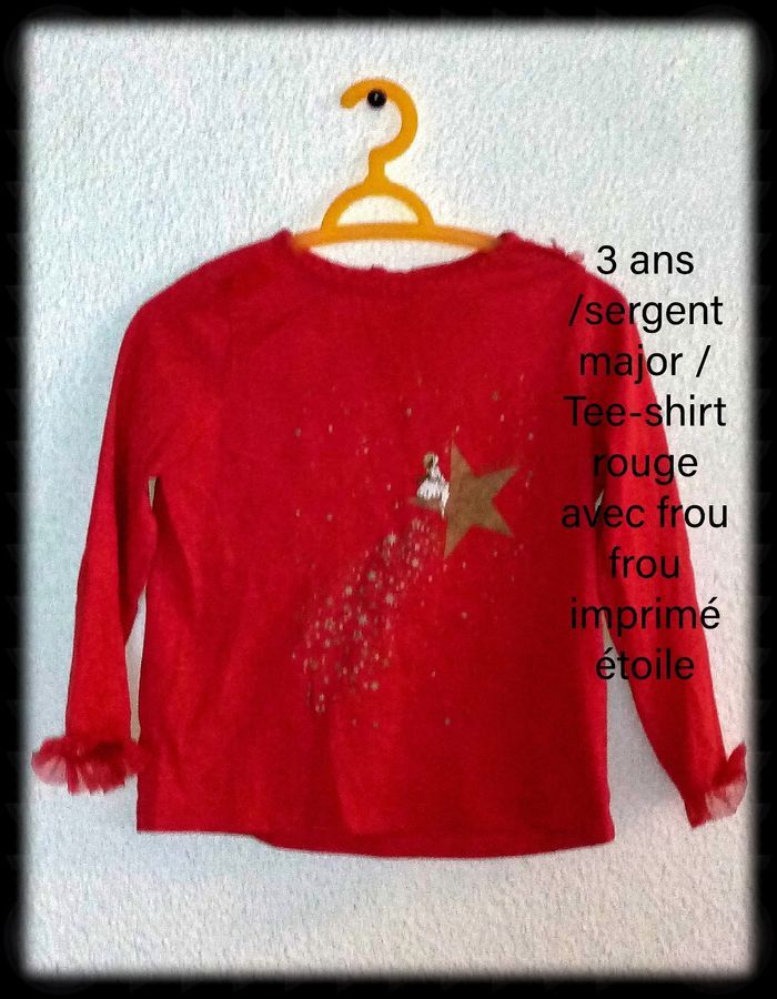 3 ans sergent major Tee-shirt rouge imprimé étoile a frou frou toutes saisons /Excellent état