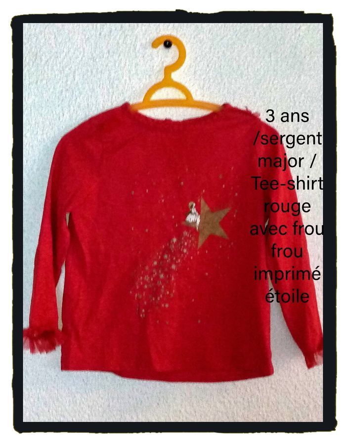 3 ans sergent major Tee-shirt rouge imprimé étoile a frou frou toutes saisons /Excellent état - photo numéro 3