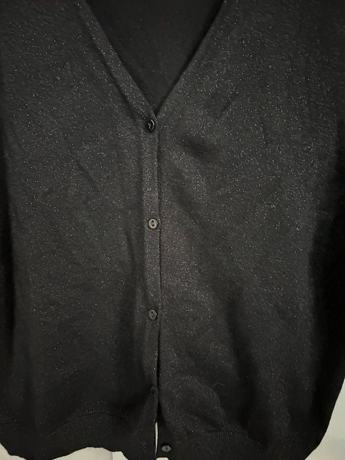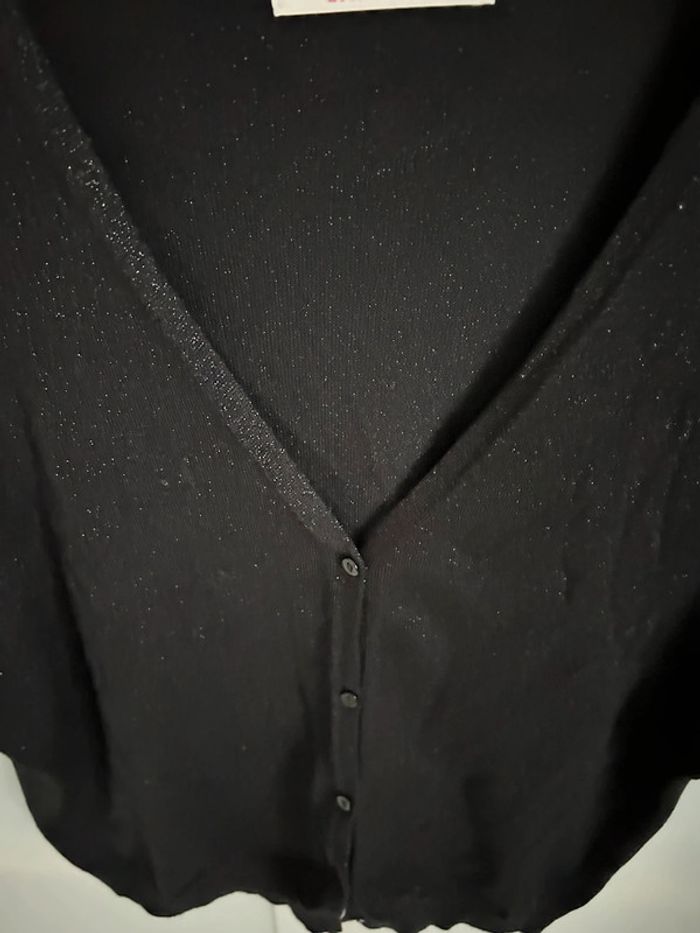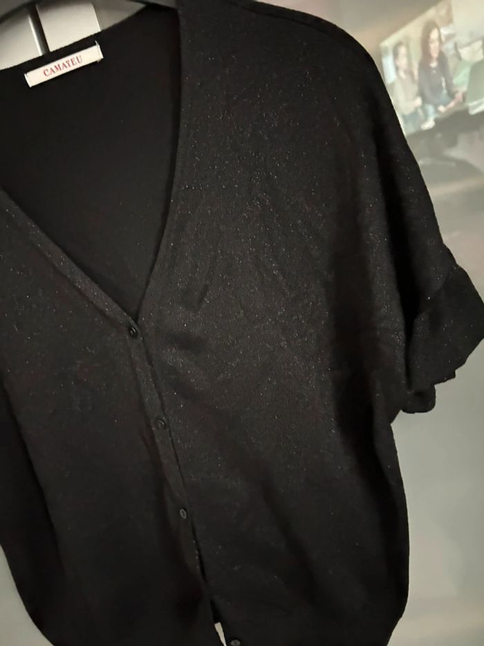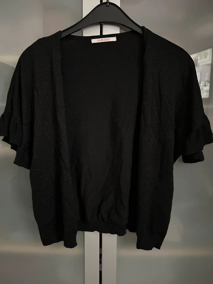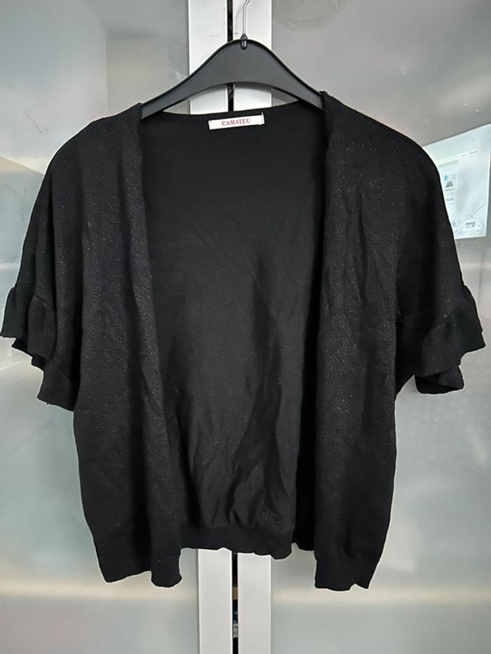 Gilet court noir pailleté manches courtes Parfait état. Peu porté. L’étiquette a été coupée c’est une taille 38/40