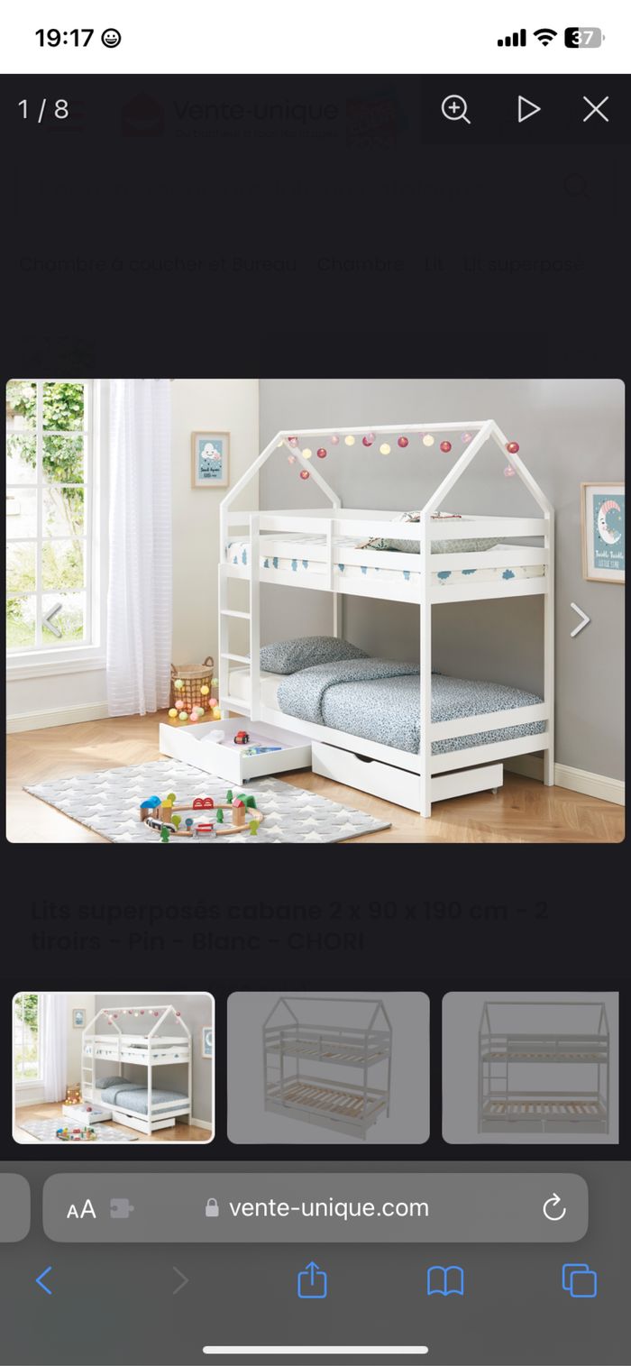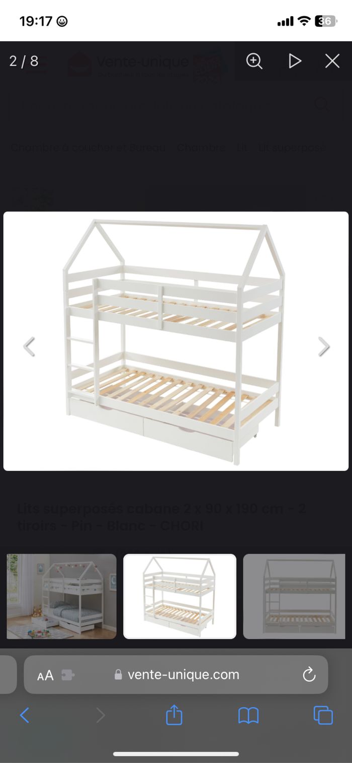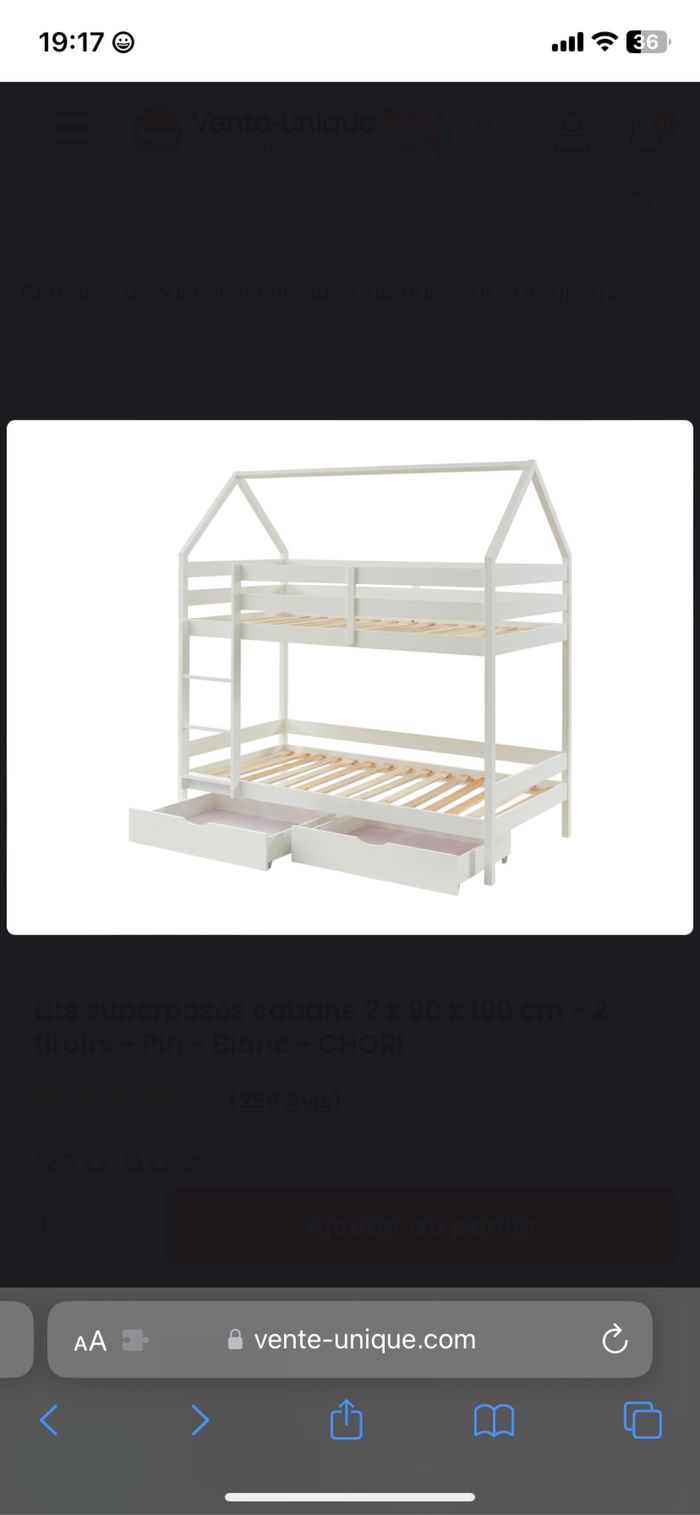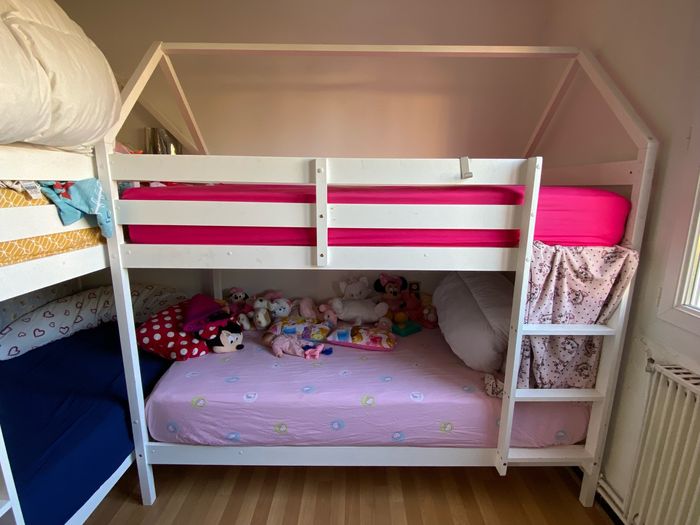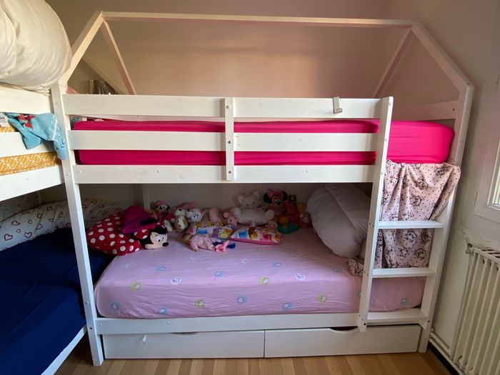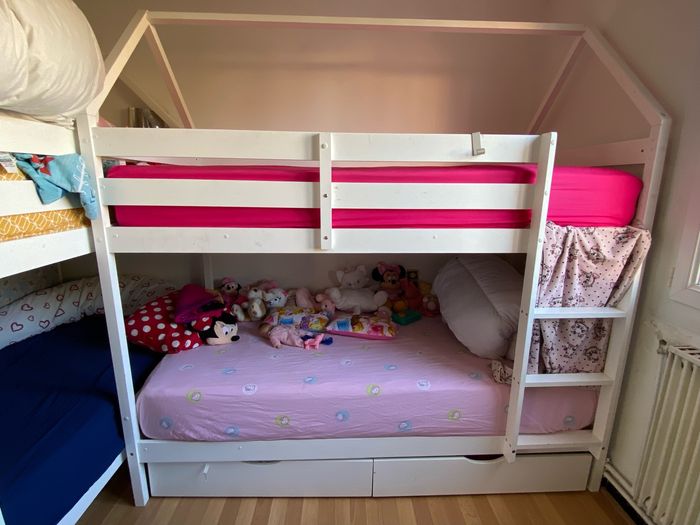 Lits superposés cabane + 2 tiroirs + 2 matelas Factures à l’appui Je vais changer la chambre de mes jumeaux qui ont grandi Vends 2 lits superposés cabane avec tiroirs pour rangements jouets ou draps, couette, housses de couettes et 2 matelas épais en parfait état très confortable factures aussi Les enfants adorent se cacher et les lits cabanes sont idéals vous rendrez heureux votre enfant avec ce lit