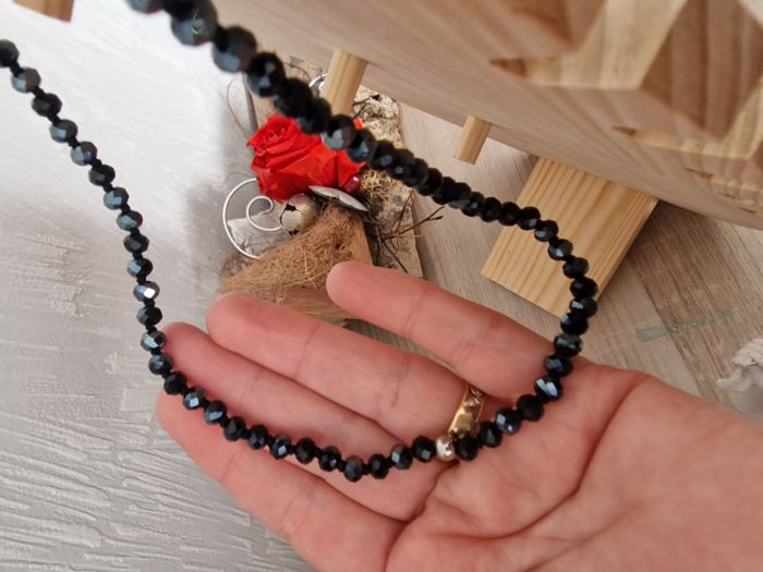 Bijou neuf, utilisé juste en présentation, toujours rangé à l'abri dans un pochon. Un magnifique rang d'1m en perles de verre facettées noires. Portez-le en collier, torsadé, associé aux chaînes, aux fermoirs et aux sapèques, avec du doré ou de l'argenté, ce collier mettra en valeur toutes vos tenues et en toutes circonstances. Compatible avec tous les rangs d'1m et chaînes d'1m ainsi que les fermoirs et sapèques de la gamme modulable Zabok. N'hésitez pas à regarder dans mon dressing, j'ai d'autres bijoux de cette gamme à vendre. Perles de verre facettées, montées sur fil de nylon, un noeud entre chaque perle et fini par un mousqueton en acier 316L. L'acier est garanti sans nickel ni cadmium. Prix d'origine: 30,90€ D'autres bijoux ici #ysatis13bijoux Pas de remises sur ce bijou, son prix est déjà remisé à prix coûtant !! Merci pour votre compréhension. #collier #zabok #rang #perles #verre #facettées #rang #1mètre #noir