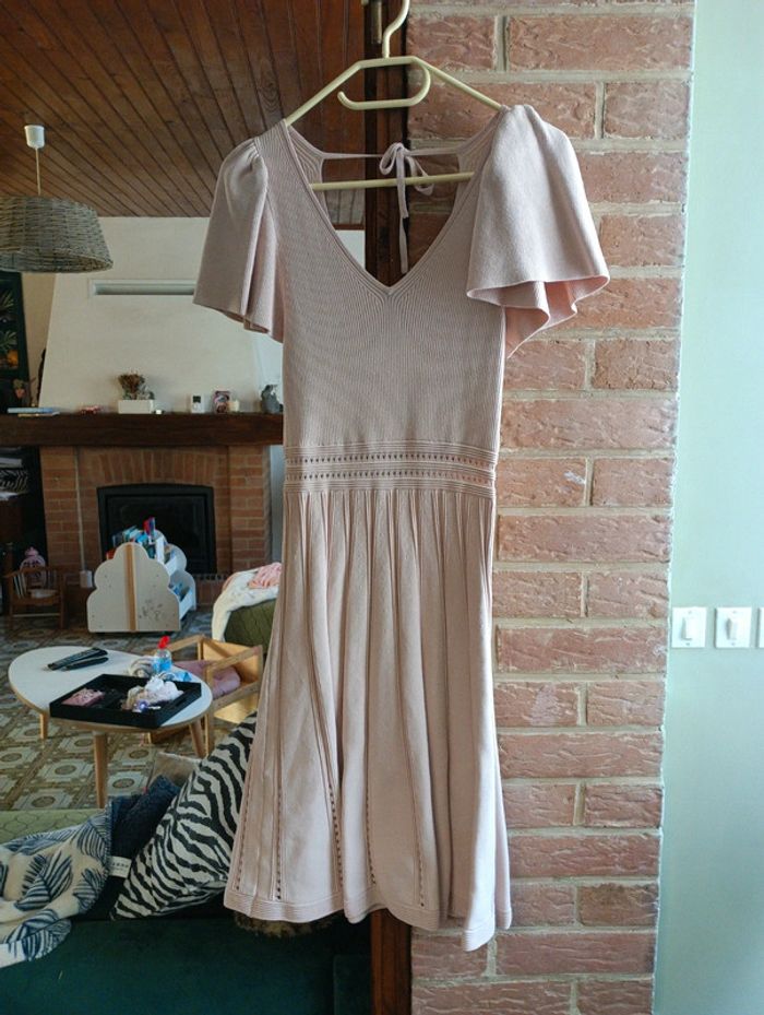 Jolie robe rose pale, Sandro, Taille 38, Style valseuse, Aucun défaut