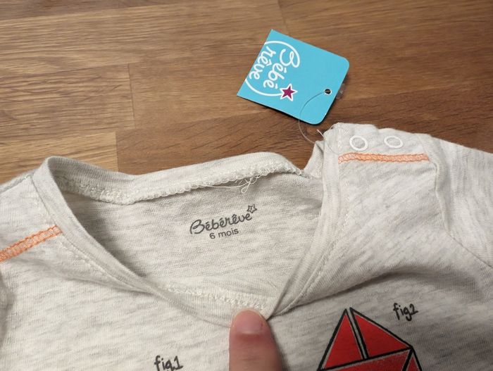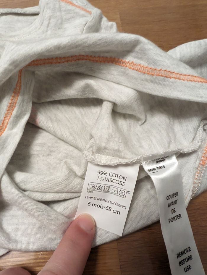 T-shirt garçon 6 mois Bébé rêve Neuf avec étiquette Gris clair, 99% coton, viscose