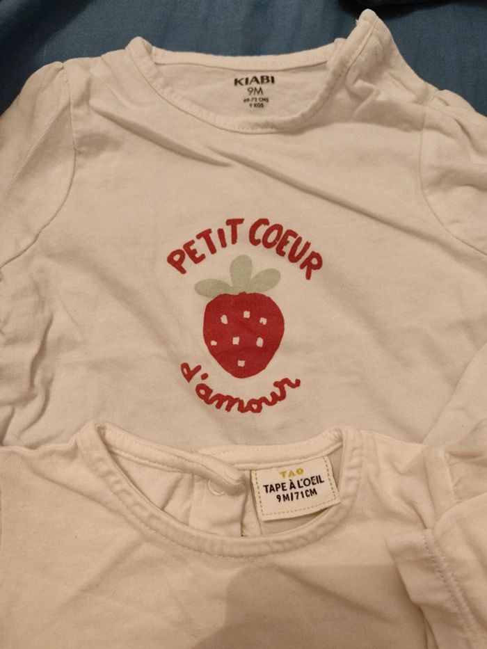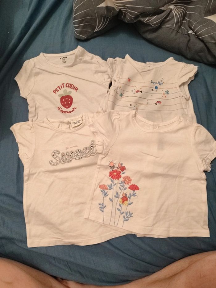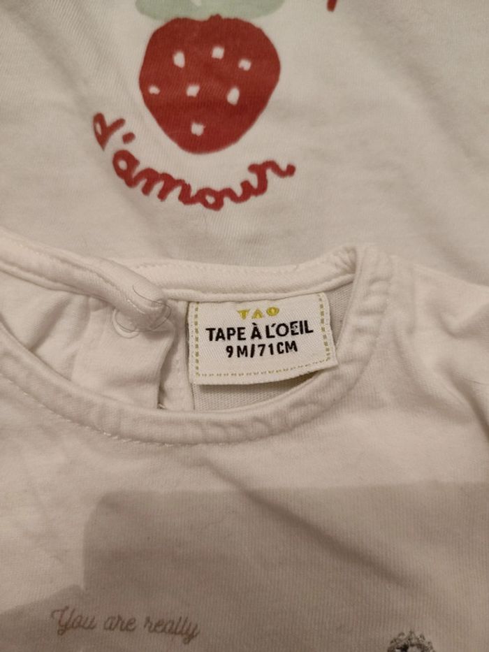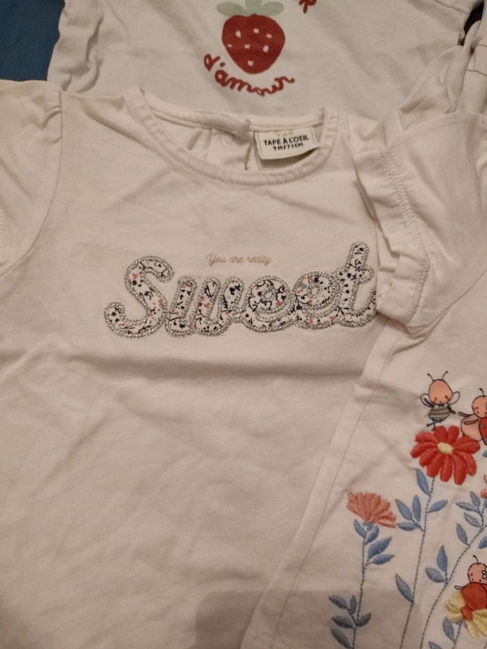 4 t shirt manches courtes 9 mois 1 Kiabi, 1 tape à l'oeil , 2 sergent major Très bon état