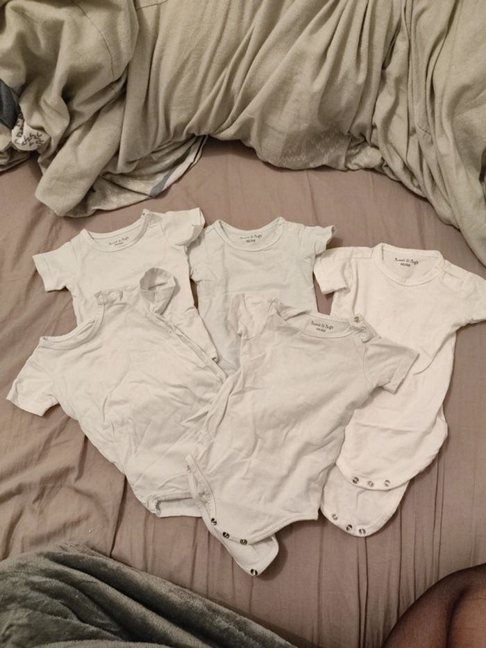 5 bodies manches courtes 4 blancs un bleu clair 6 mois , 62/68 cm Portés mais encore très bon etat Tout mon 6 mois sur #melissarnr6mois