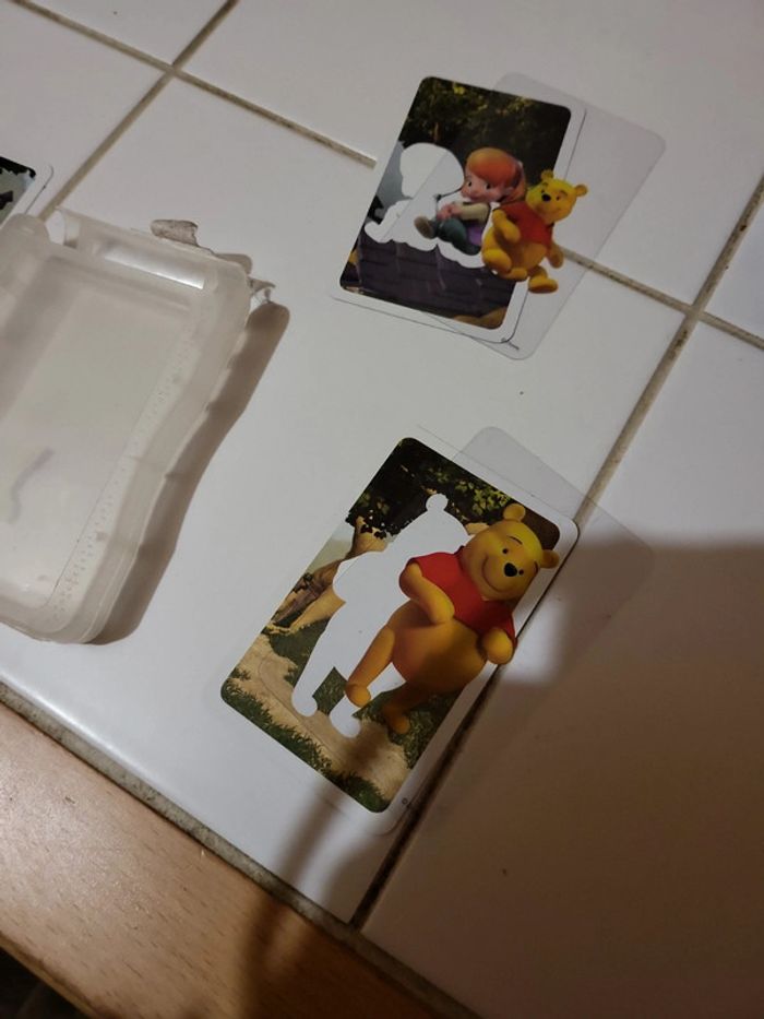 Jeu de cartes complet Superposition des silhouettes de tous les copains de winnie l'ourson avec cartes plastique transparentes Jeu de cartes 1er âge Complet Ba Ba
