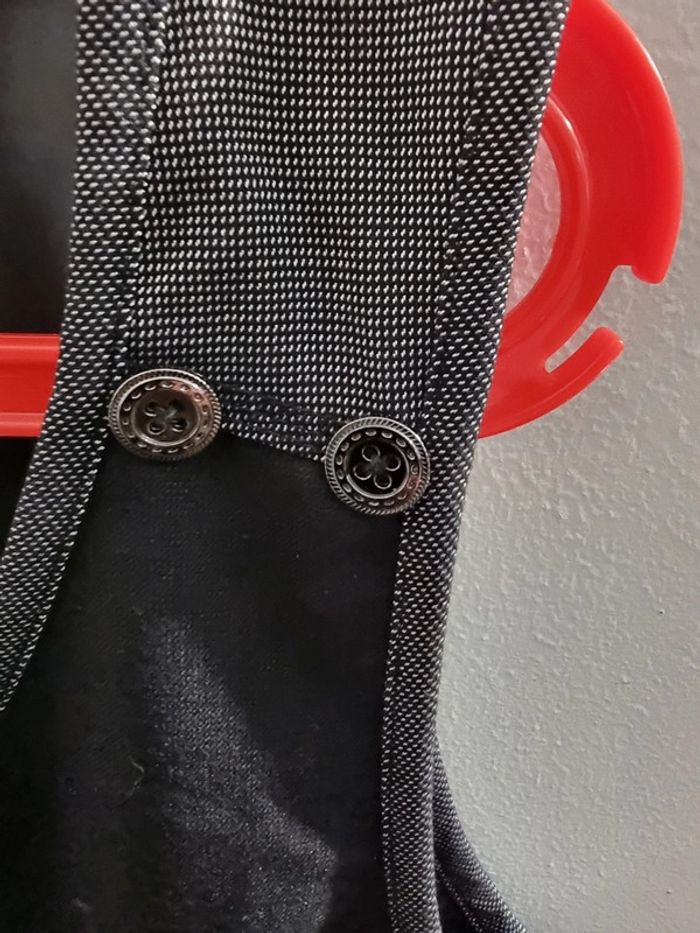 Robe noire Gémo Forme boule Sans maches Avec doublure Petits boutons décoratifs métal Pièces de tissus damier serré noir et blanc, à l'avant et à l'arrière Grandes poches Robe boule courte, pour moi mi cuisse. Taille 48 En très bon état. Portée une soirée. #angel_vêtement_adulte_48