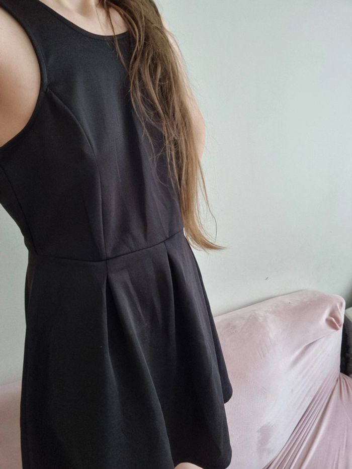 Robe ici et maintenant Coloris noir Dos nu Robe courte, arrivant au dessus du genoux, pour moi. Sans manches Fermeture zippée sur le bas de la robe Tissus légèrement plissé en partie bassepour donner un joli volume sur le bas de la robe Tissus lisse et soyeux Taille 44 Mesures : 49 cm Largeur sous aisselles 40 cm Largeur taille 91 cm hauteur Portée quelques heures uniquement. En très bon état. #angel_vêtement_adulte_44