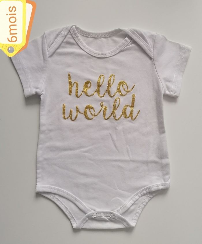 Bodie Manche courte Hello world argenté 70cm (6/9mois) Blanc. Neuf sans étiquettes 4€