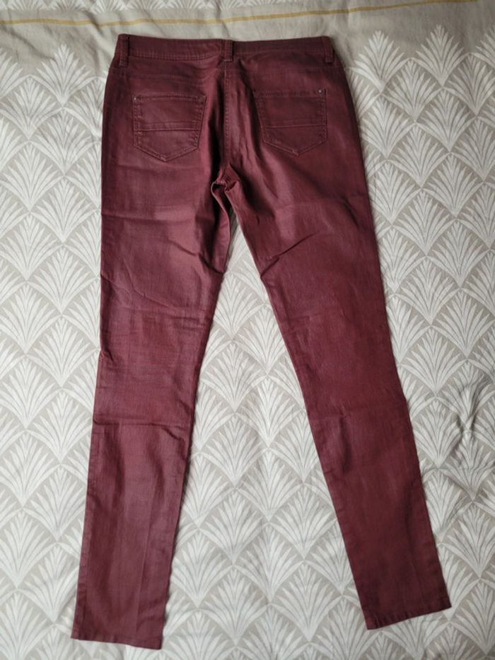 Pantalon bordeaux effet légèrement brillant Pimkie Taille 38 N'hésitez pas à créer votre lot, n'hésitez pas à cliquer sur les liens pour voir mes autres annonces : #beautifuldressingv38 Remise sur les lots activées !