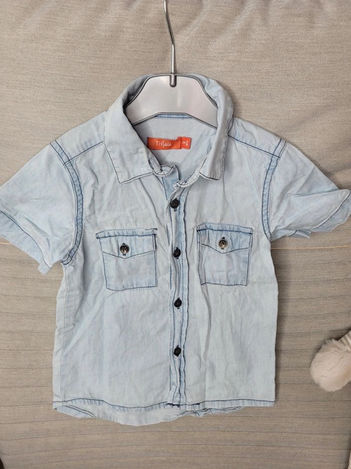 Chemisette en jean Tissaia 3 ans N'hésitez pas à créer votre lot, n'hésitez pas à cliquer sur les liens pour voir mes autres annonces : #beautifuldressingv3ans #beautifuldressingvenfant Remise sur les lots activées !
