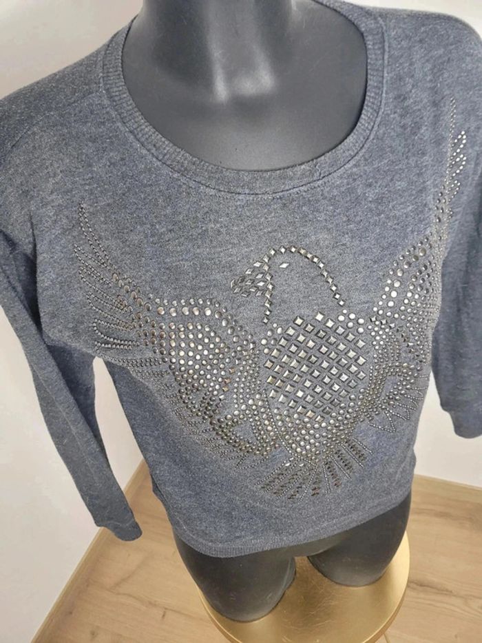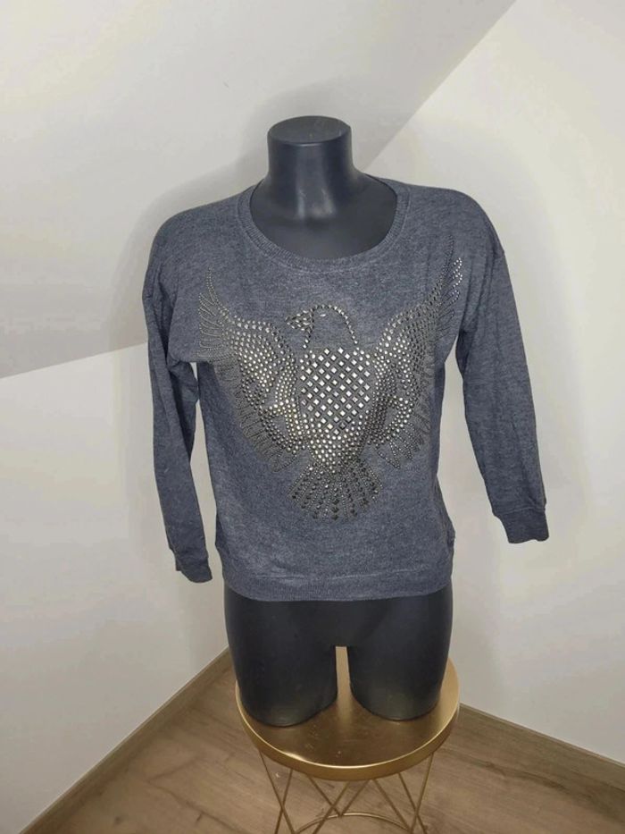 Pull gris Zara Taille 36 Motifs clous aigle Manches assez courtes Coton, polyester A été porté quelques fois d'où le bon état N'hésitez pas à créer votre lot, n'hésitez pas à cliquer sur les liens pour voir mes autres annonces : #beautifuldressing36