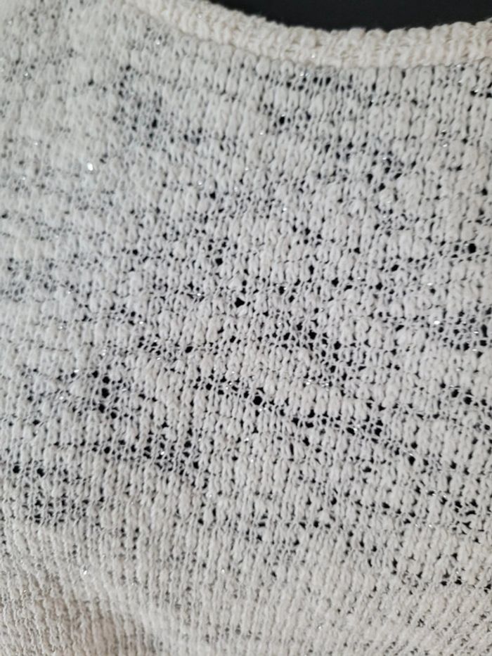 Pull blanc avec fil argenté Jennyfer Taille 40 Légèrement plus court à l'avant Un peu transparent Coton et fibre métallisée À été porté plusieurs fois d'où le bon état N'hésitez pas à créer votre lot, n'hésitez pas à cliquer sur les liens pour voir mes autres annonces : #beautifuldressingv40 Remise sur les lots activées !