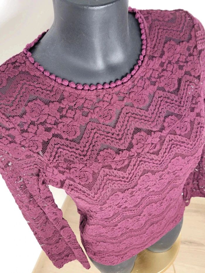 Pull fin bordeaux dentelle Mim Légèrement transparent au dessus des manches, en haut et dans le dos Plus d'étiquette mais cela correspond à une taille 36 À été porté plusieurs fois d'où le bon état N'hésitez pas à créer votre lot, n'hésitez pas à cliquer sur les liens pour voir mes autres annonces : #beautifuldressingv36 #beautifuldressingvhiver Remise sur les lots activées !