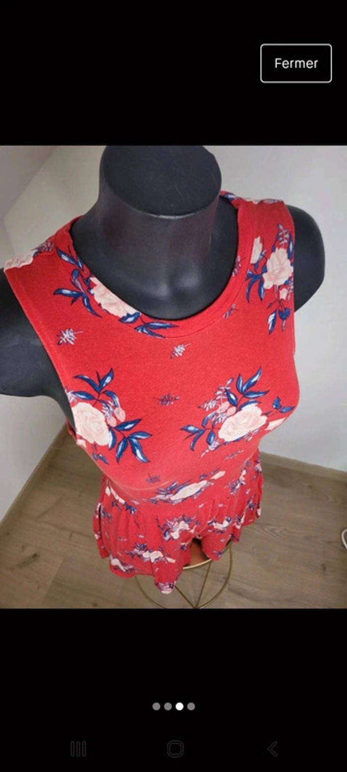 Combi short rouge motifs fleurs H&m Taille 36 96% viscose, 4% elasthanne Le tissu commence légèrement à se découdre dans le dos (voir dernière photo) À été portée plusieurs fois #beautifuldressing36
