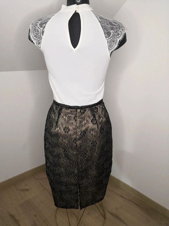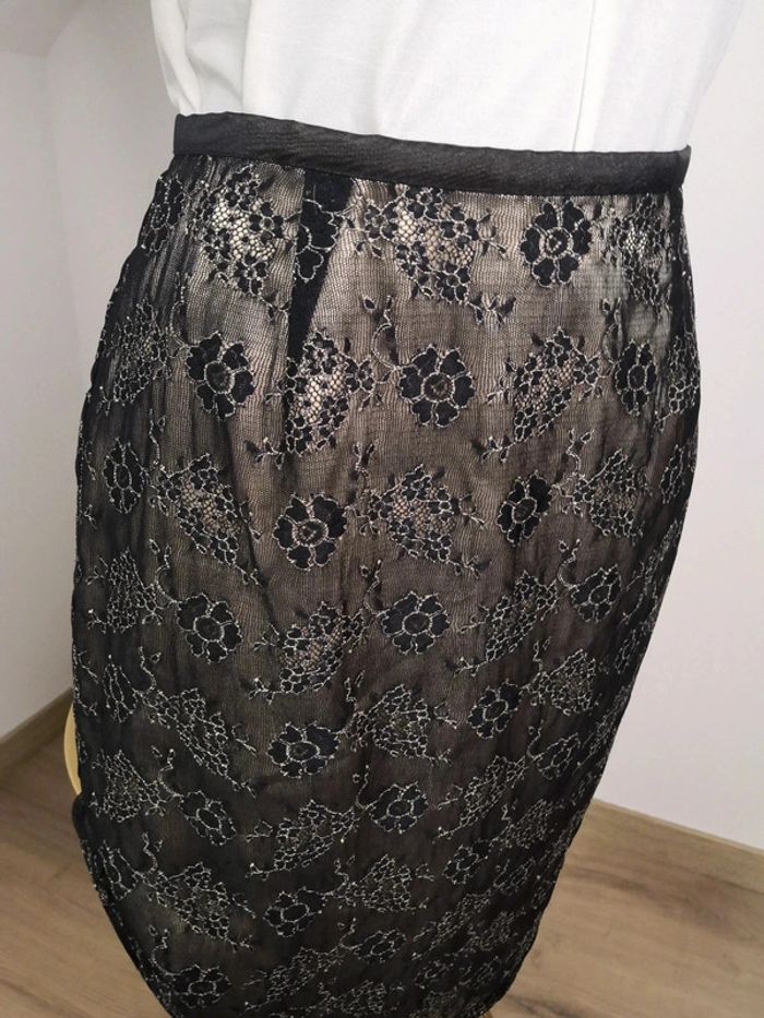 Jupe 123 Taille 38 Dentelle noire Doublure creme Fermeture éclaire à l'arrière Petite fente en bas à l'arrière 61% polyamide, 24% polyuréthane, 15% polyester Doublure 100% polyester N'hésitez pas à créer votre lot, n'hésitez pas à cliquer sur les liens pour voir mes autres annonces : #beautifuldressing38 Remise sur les lots activées !