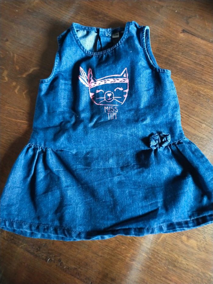 Jolie robe en jeans avec tête de chat 12 mois - photo numéro 1