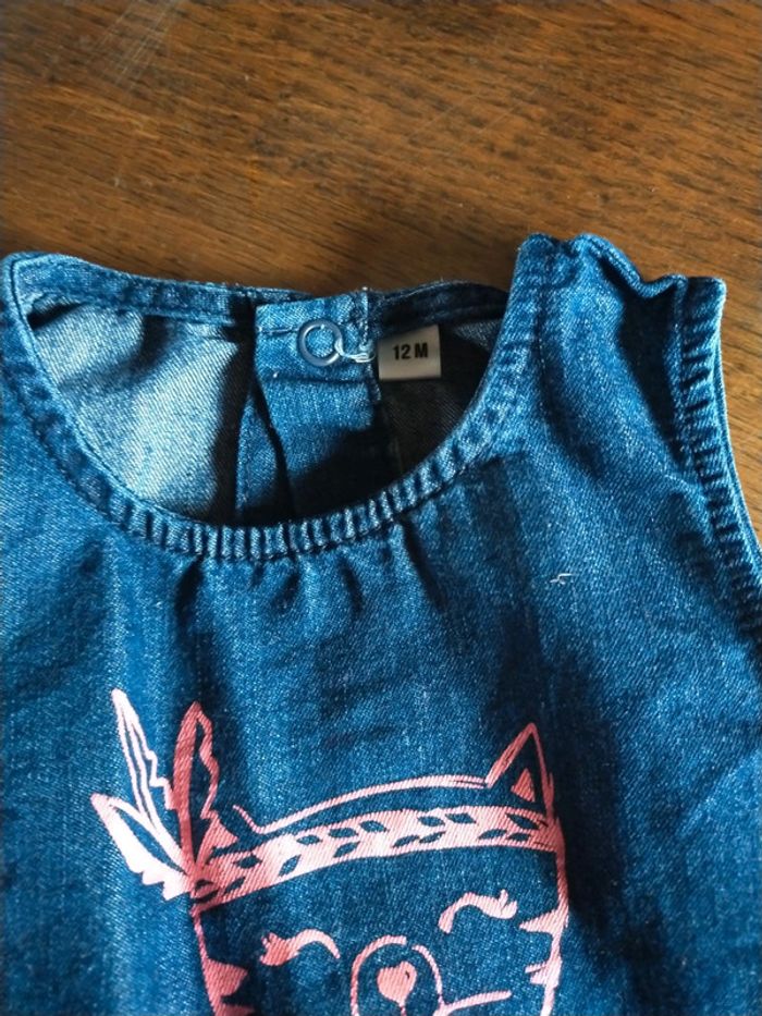 Jolie robe en jeans avec tête de chat 12 mois - photo numéro 3