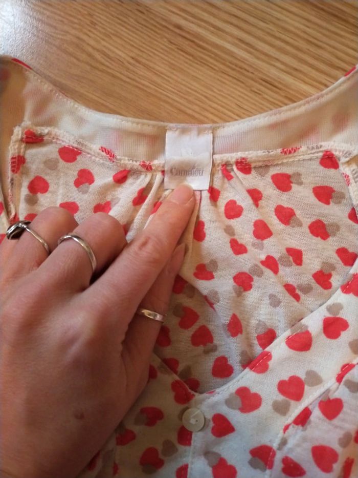 Camaïeu. Pas d'étiquette, correspond à un 36. Blanc avec motif de cœurs