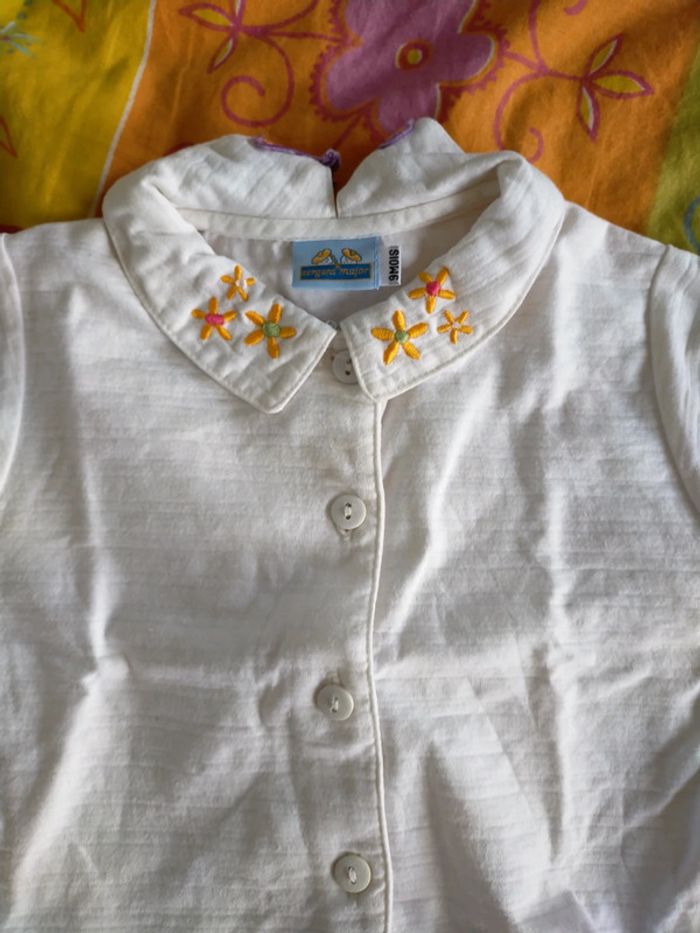 Chemisette col claudine fleurie T-shirt bleu motif souris Tbe