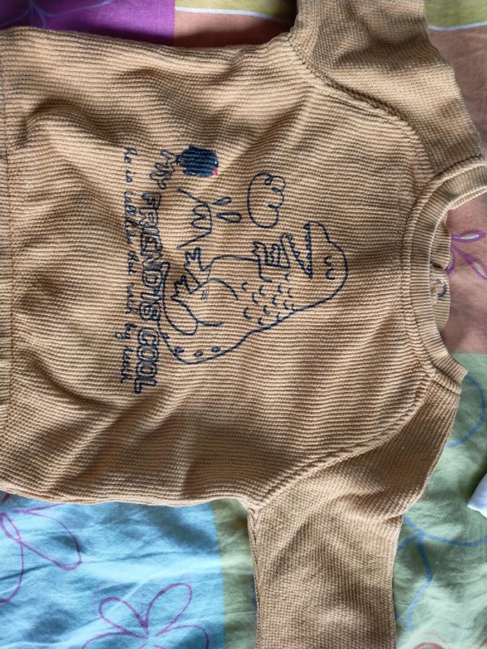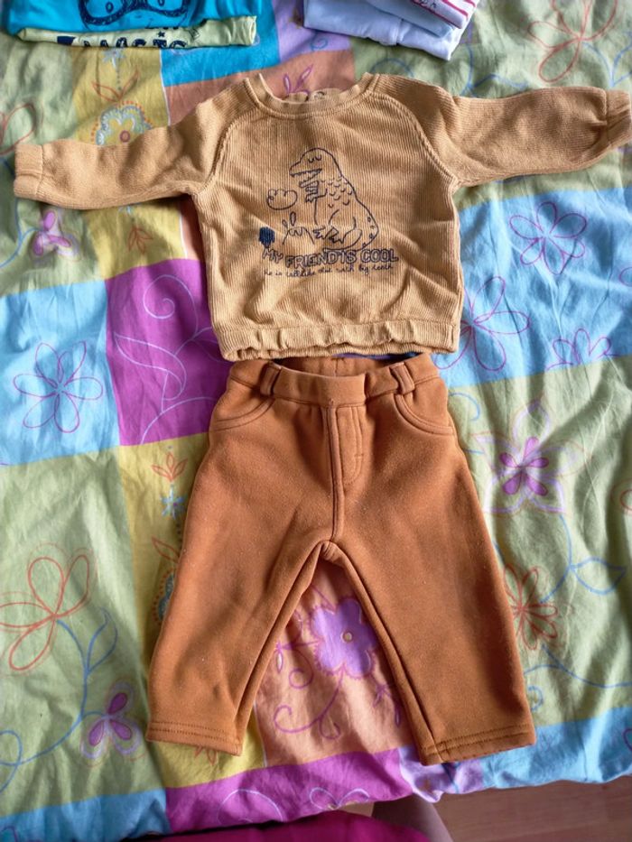 Bas molletonné 9 mois Haut coordonné dinosaure volcan 6 mois mais taille plutôt grand