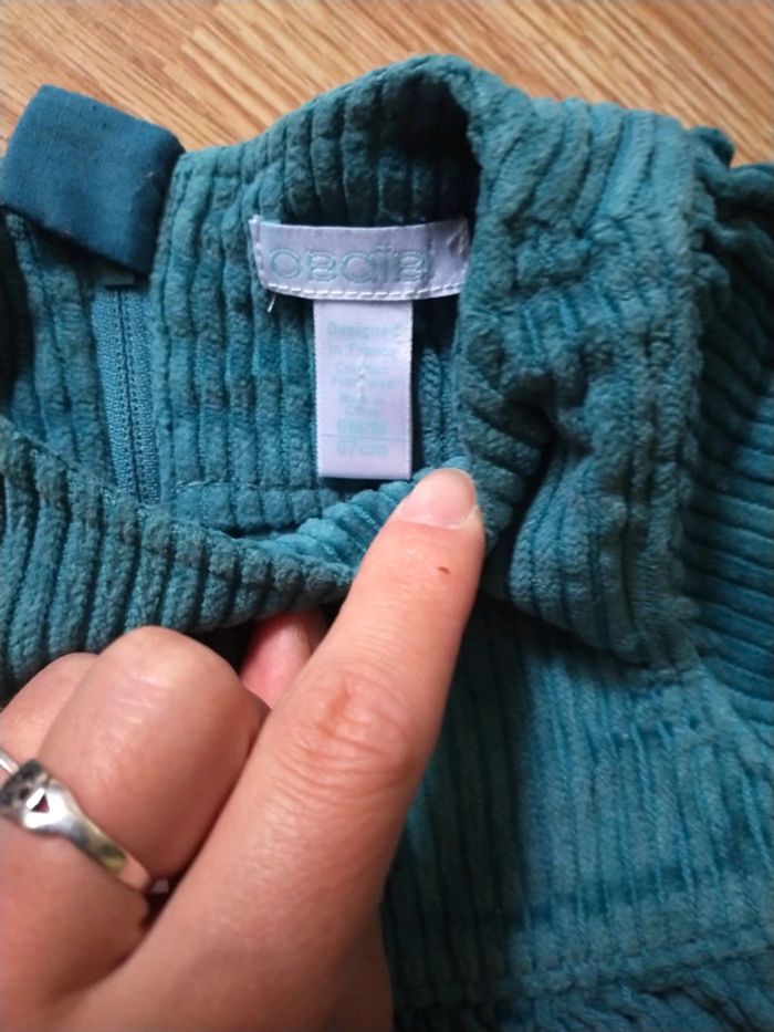 Velours grosses côtes. Couleur bleu canard. Tbe