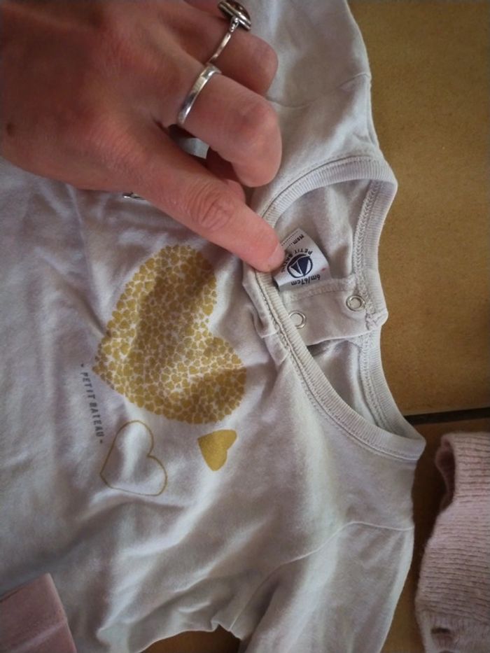 T-shirt blanc avec coeur petit bateau T-shirt rose uni Kitchoun Gilet petit bateau, taille 12 mois mais a rétréci au lavage, convient plutôt pour 6 mois