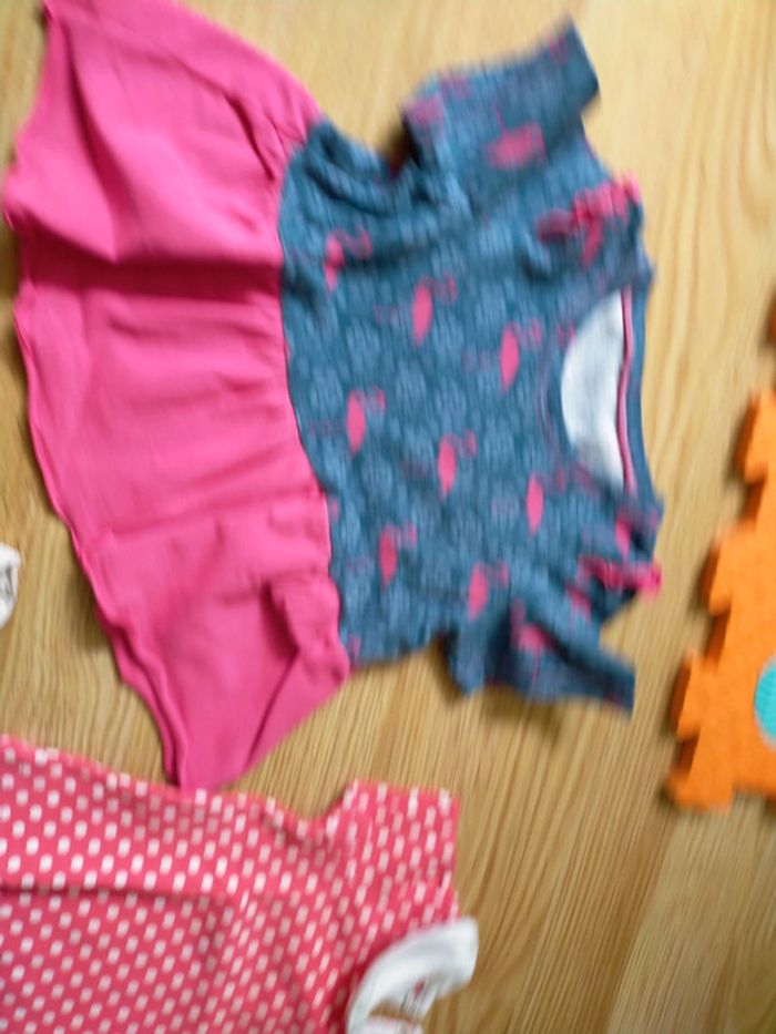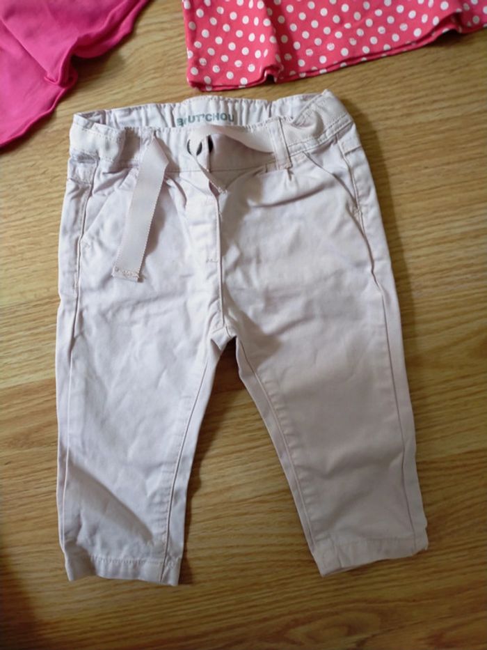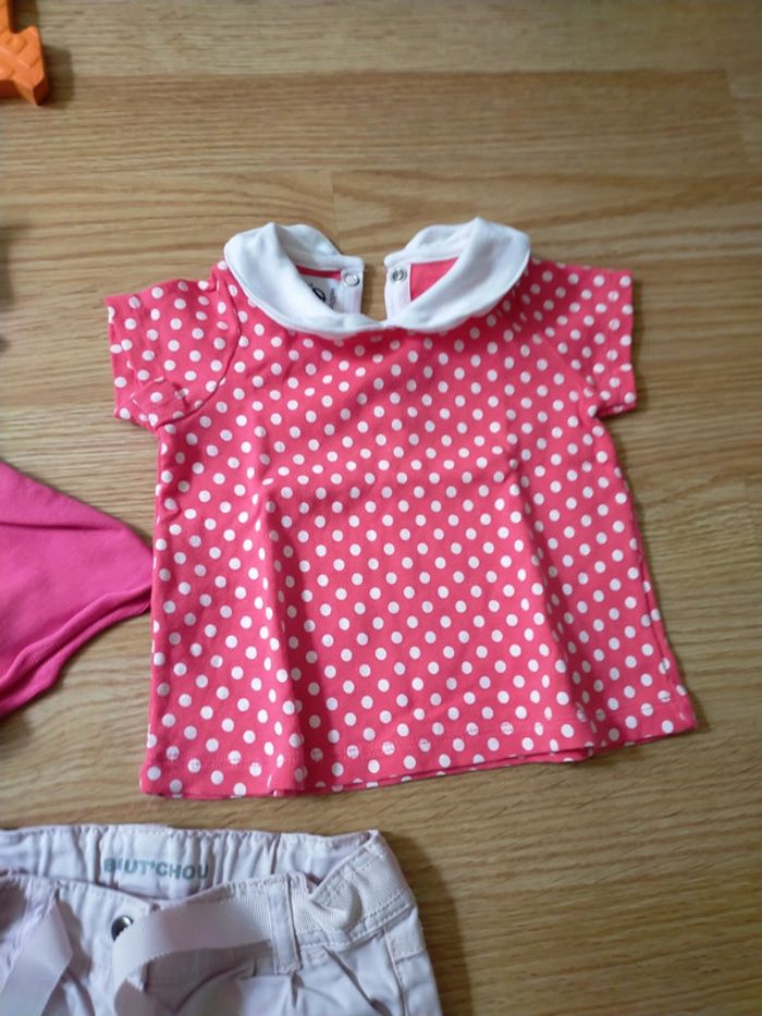 T-shirt manches courtes flamant rose Blouse manches courtes col Claudine petit bateau rose à pois blancs Pantalon rose pâle bout chou