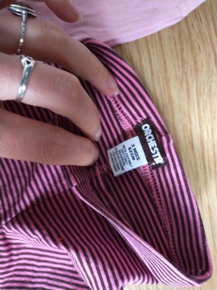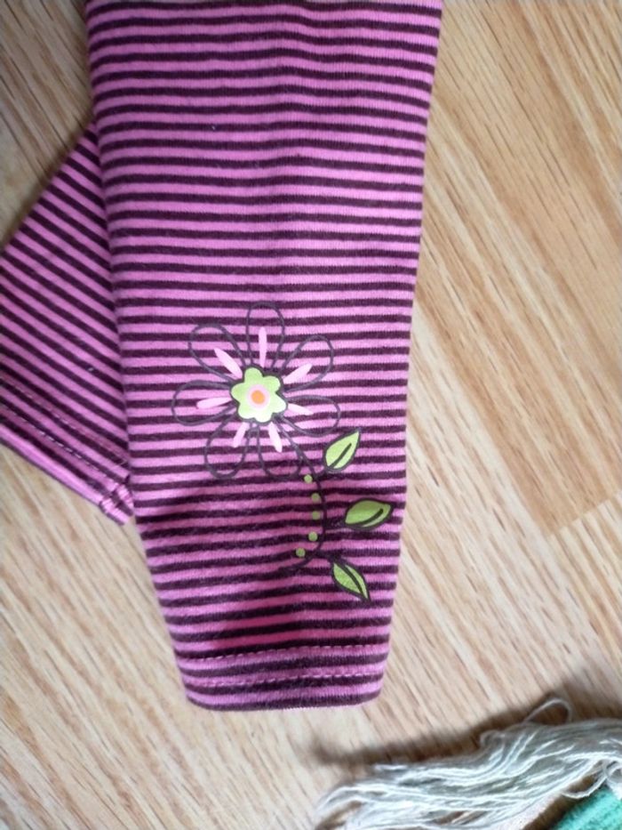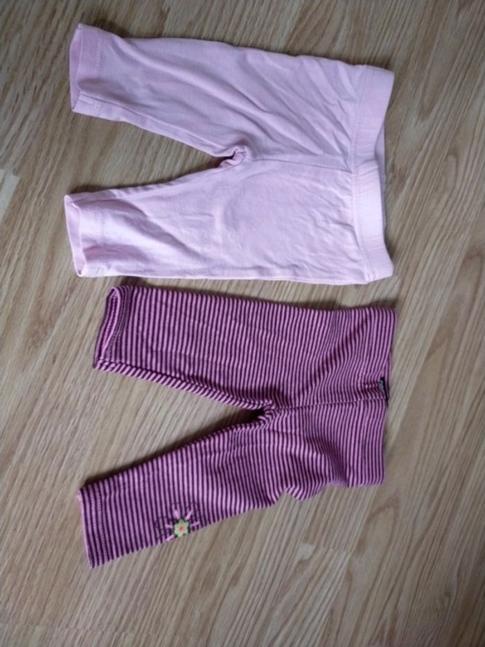Lot 2 leggings rose, l'un uni, l'autre à rayures avec motif fleur Tbe. Taille 3 mois