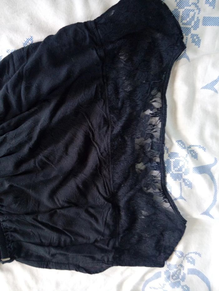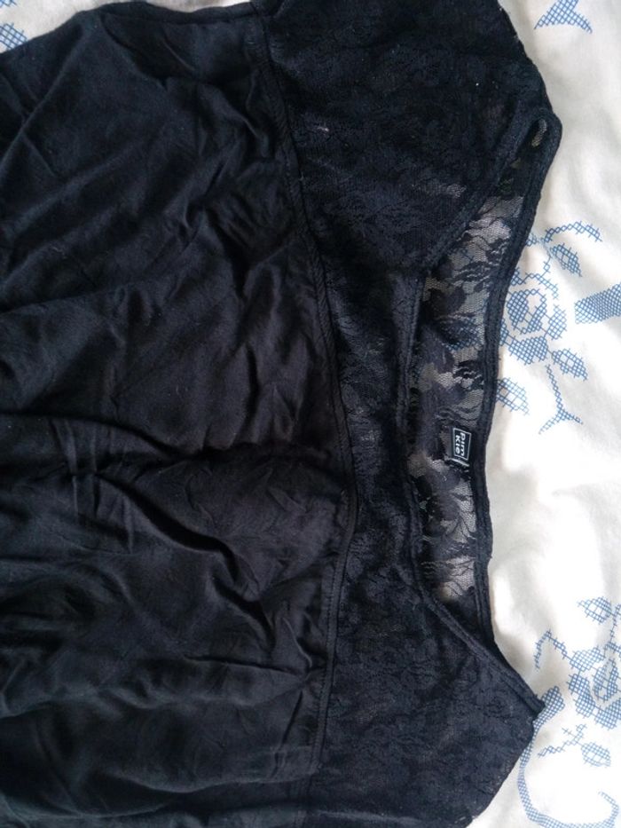 Noire de chez Pimkie. Haut en dentelle devant et dos, jupe doublée, taille élastiquée. Agréable à porter