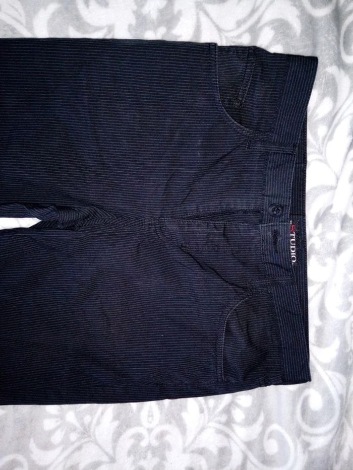 Pantalon noir très élégant, fines rayures plus claires. Taille 40