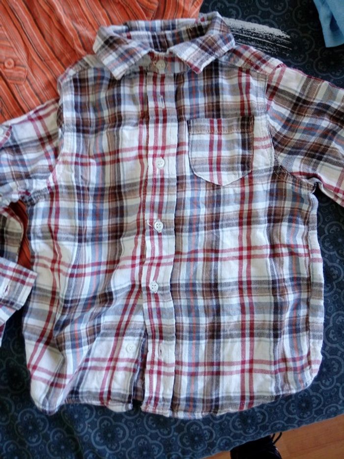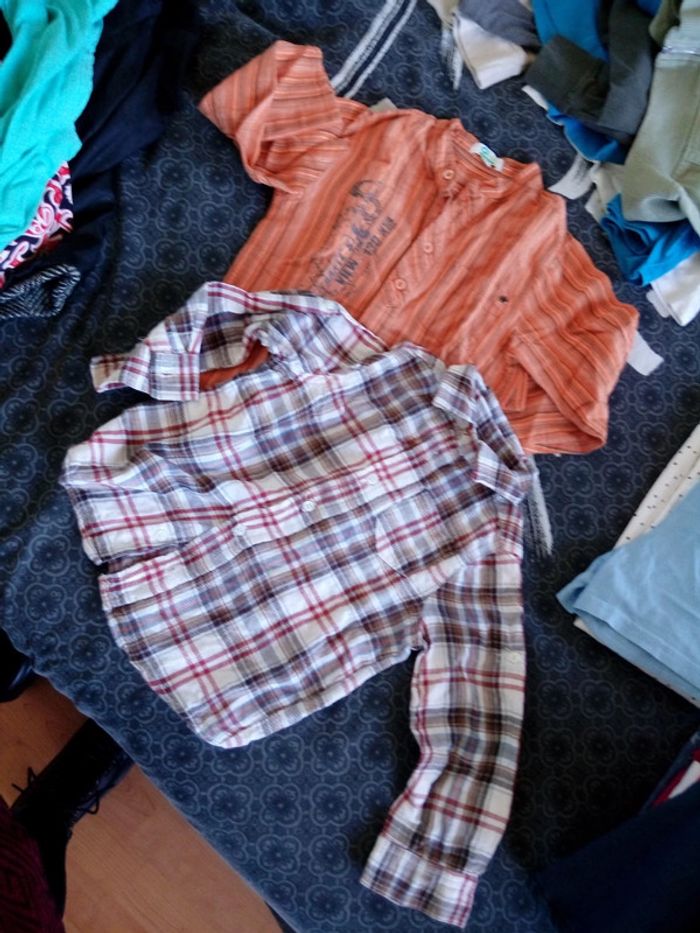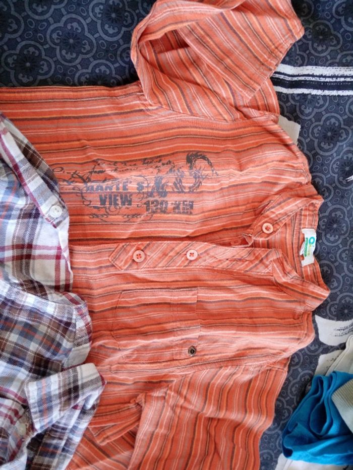Une chemise rayée orange, col tunisien, Vertbaudet Une chemise à carreaux. Tape à l'oeil Bon état