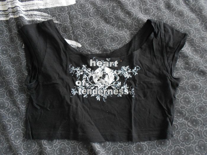 Top court à motif blanc et paillettes, col rond, idéal au-dessus d'un débardeur