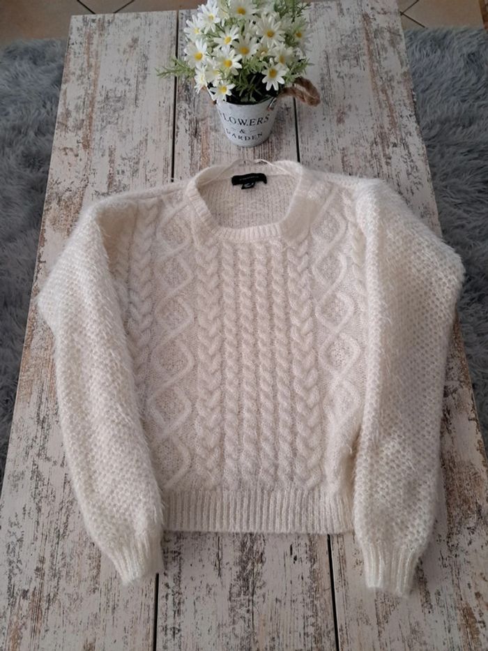 Pull blanc manches nid d abeilles 🐝 - photo numéro 1