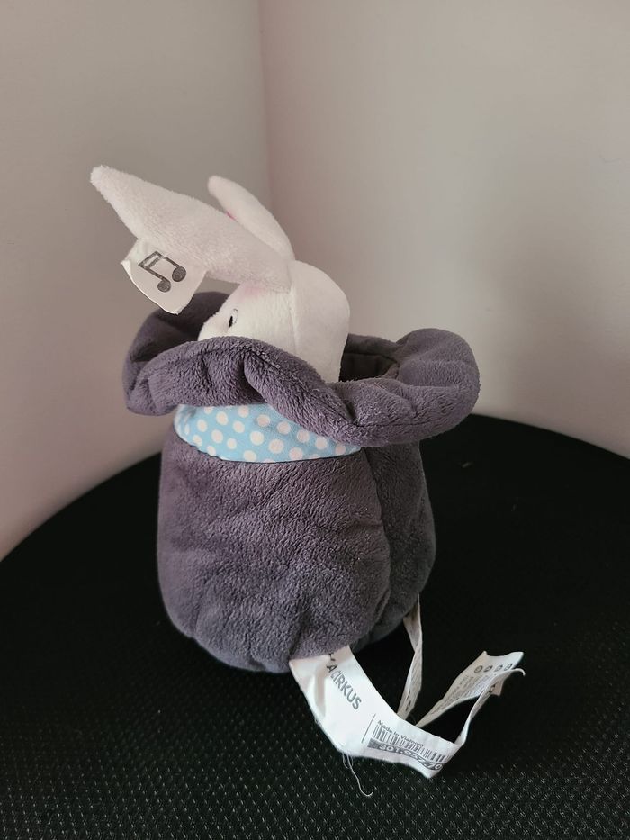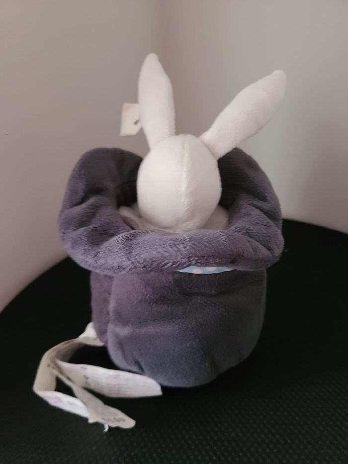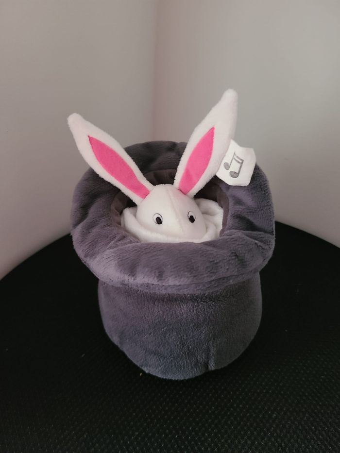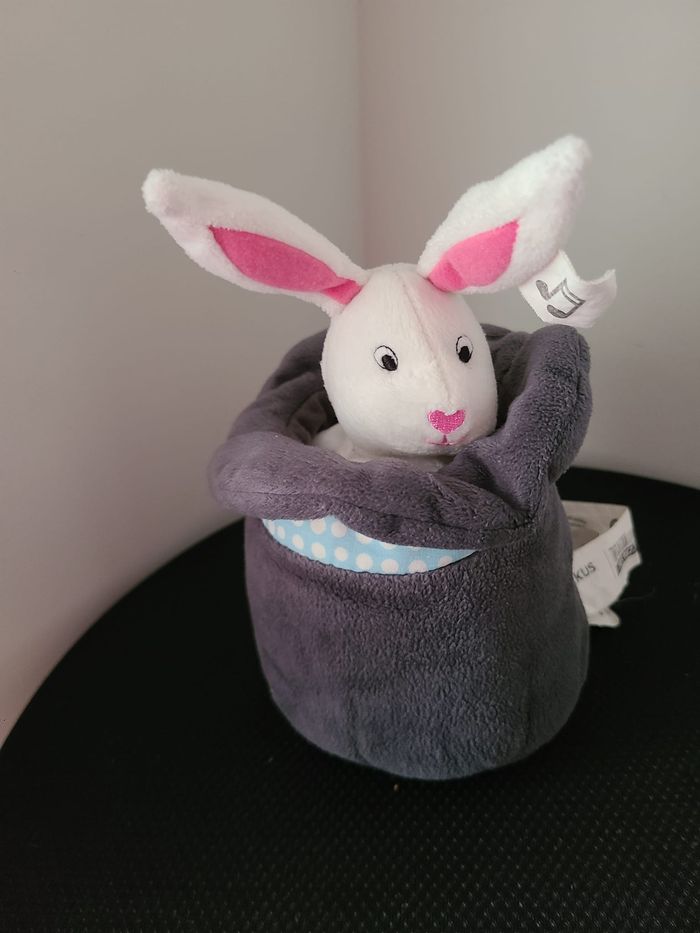 DOUDOU PELUCHE MUSICAL IKEA Leka Circus LAPIN MAGICIEN BLANC CHAPEAU GRIS 127
