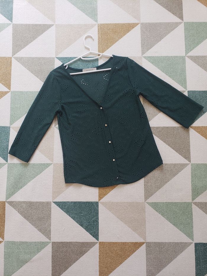 NEUF jamais porté⚠️ Prix boutique 24,99 Eur🏷 Gilet|Cardigan manches 3/4 Dentelle|Broderie anglaise extensible Étiquette coupée => 36/Small | 14/15 ans Couleurs vert bouteille | Boutons or/dorés Superbe👌