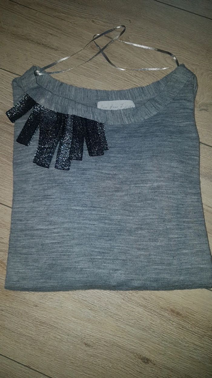 Tee shirt haut pull fin gris chiné zara S