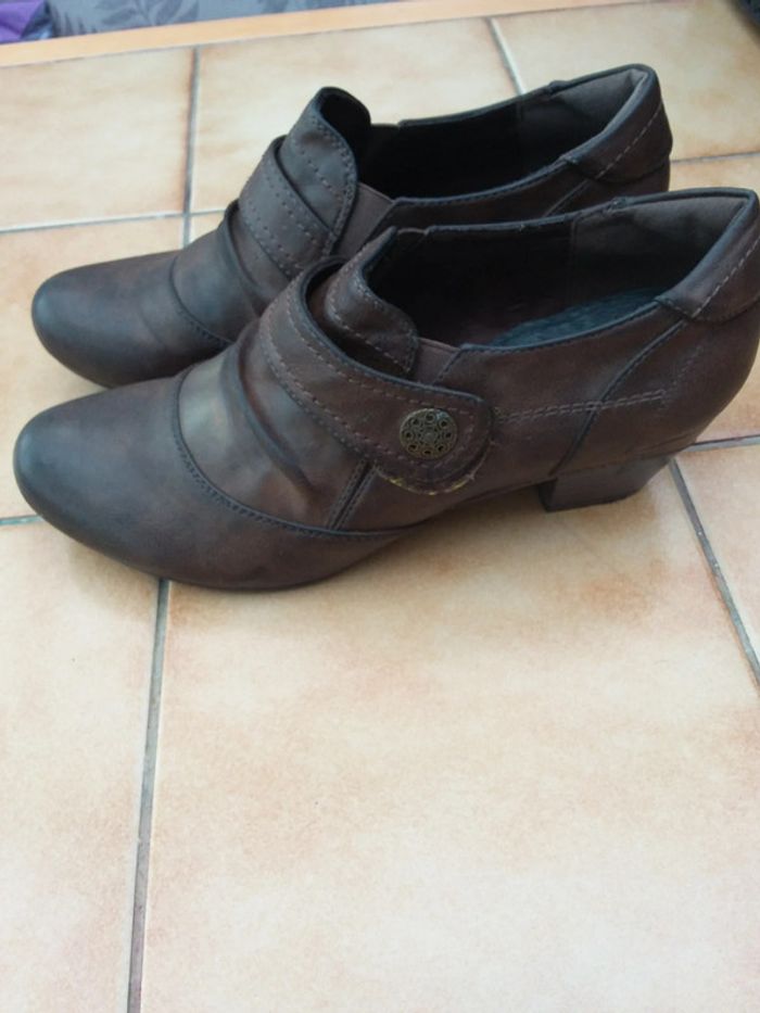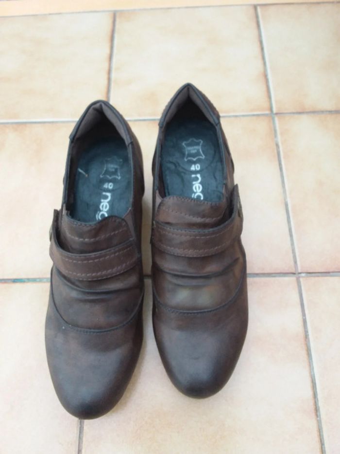Vend chaussures femme couleur marrons Pointure 40 talons carrés portée 2 fois fermer par scratch Prix 8 euros
