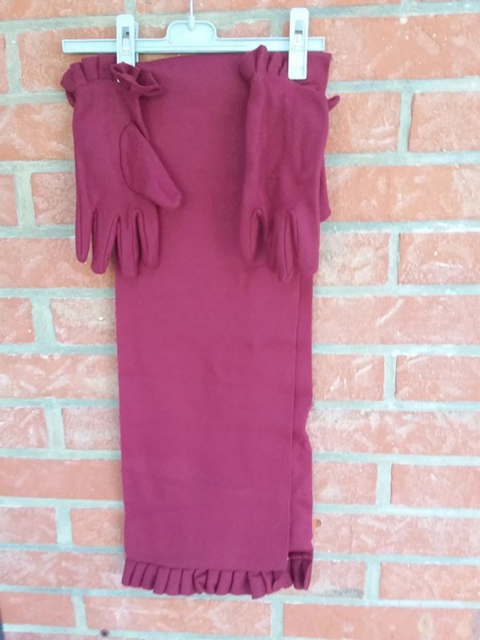 Vend écharpe et gants femme couleur Bordeaux 100% polyester jamais portée prix 2 euros