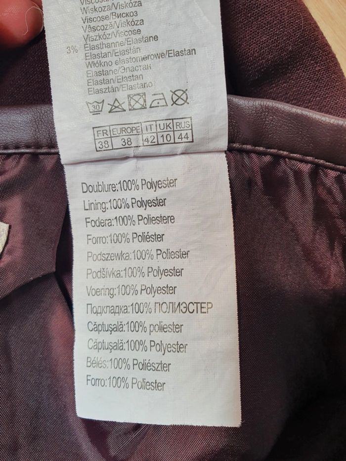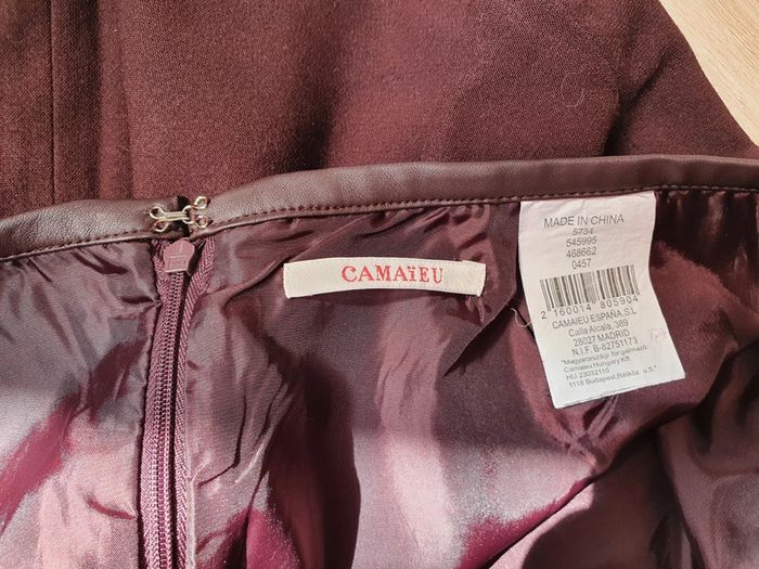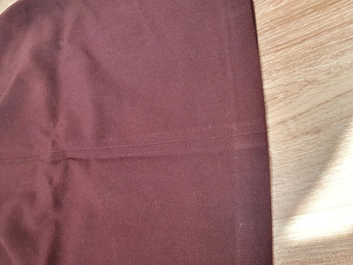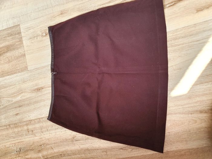 Jupe bordeau en bon état, un petit accro (voir dernière photo) et la lanière en cuir en haut à quelques défauts (le cuir part un peu à deux ou tous endroits). Camaieu 38. #jupe #bordeau #violet #courte