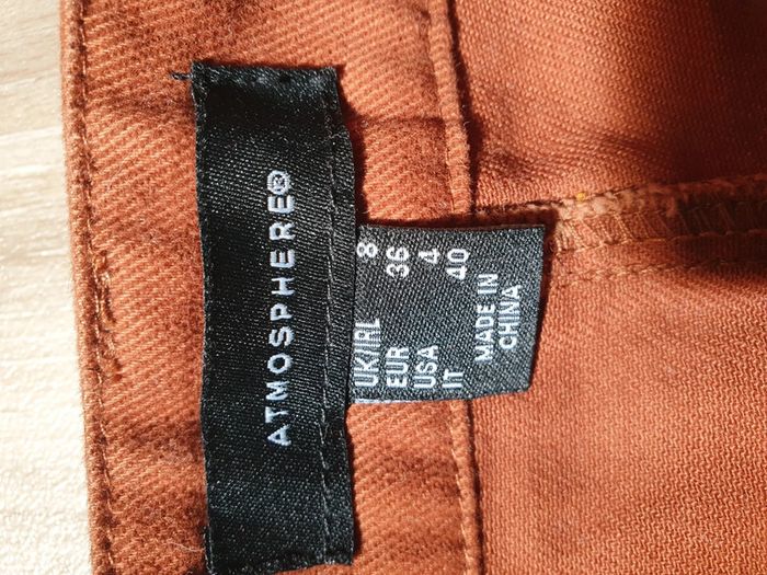 Jupe marron Atmosphère, taille 36. En très bon état, seul une petite "trace" sur la poche droite (voir dernière photo). #jupe #marron #été #courte #bouton #doré