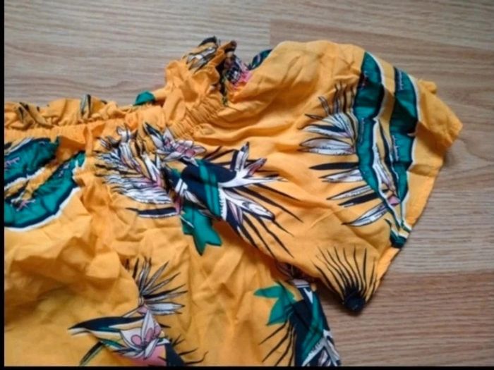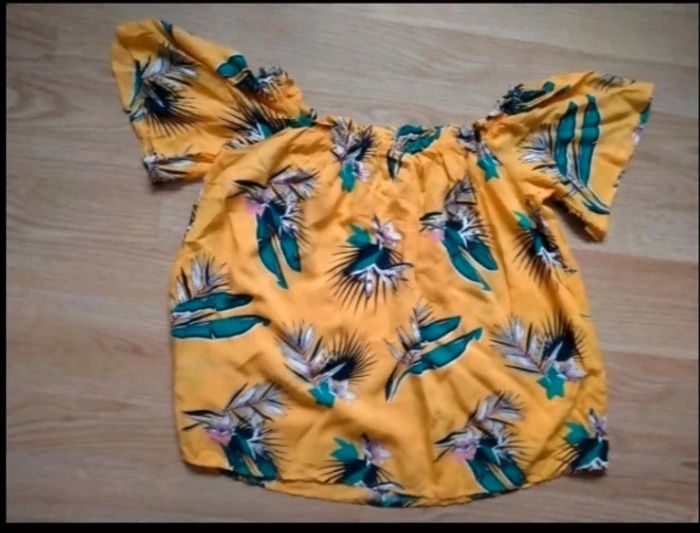 Jolie top épaules dénudées. Woman by gémo. Taille 42 Jaune, motifs fleurs des îles Très bon état. 3 Euros Envoi par mondial Relay Remise en main propre possible sur Beauregard Vendon Riom ou Clermont Ferrand 63 #ptitesev63vetement42