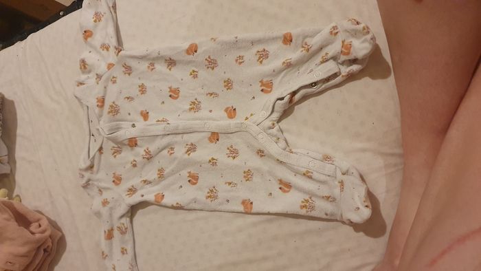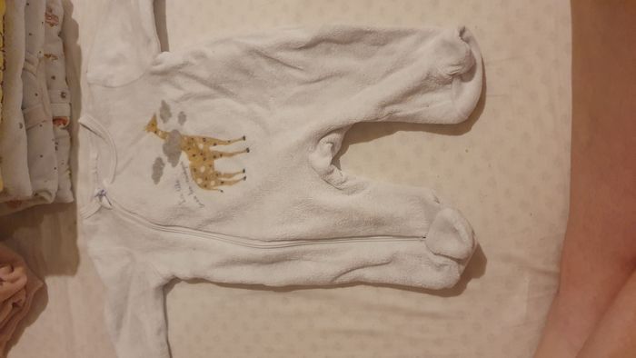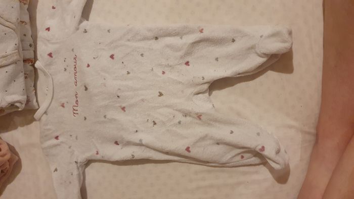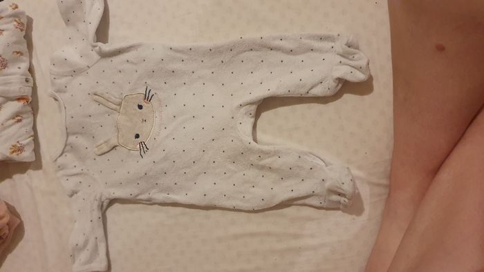 2 dernier pyjamas de taille 0 mois mais très grand, ma fille l'a porté longtemps avec le reste des pyjamas taille 1 mois. Tous mes lots sont à 2,50€ pièces.