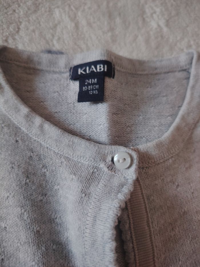 😻 Gilet fille 😻 Manches longues 😻 Couleur gris uni 😻 Marque Kiabi 😻 Taille 24 mois 😻 Très bon état