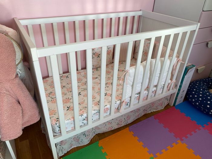 Je vends le lit SUNDVIK (prix neuf 199€) avec le matelas HIMLAVALV (prix neuf 149€) qui n’a jamais été utilisé. Je le vends pour 150€. Mon bébé refuse de dormir dedans. Possibilité de vendre avec la literie composée d’un tour de lit Vertbaudet, alèse IKEA, drap house Vertbaudet (30€ a pour l’ensemble). J’ai encore la notice explicative et la planche pour enlever les barreaux et ouvrir le lit.