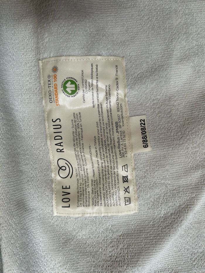 Écharpe de portage de la marque love radius. Modèle basic perle en coton bio. Je n’ai plus la boîte mais elle est comme neuve, je ne l’ai jamais utilisée.